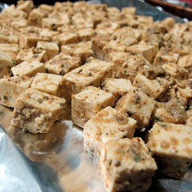 Cube tofu and dice 1 apple and transfer into baking dish. Combine mustard, honey, and apple cider vinegar with all other ingredients except for the second apple. Pour half of the marinade over the tofu and let marinade for at least an hour. Dice the second apple and add to the second half of the marinade to place in the fridge for later. After the tofu has marinated for one hour place in over at 375 degrees Fahrenheit and place in the over for 20-25 minutes, turning the tofu half way through. Check after 25 minutes, and continue to turn tofu and place back into oven for 5-10 minute intervals (turn each time) until golden brown. When the tofu is baked to your desire, remove from oven and let cool before coating with the second half of the marinade. Serve alone, or on top of a bed of mixed greens.