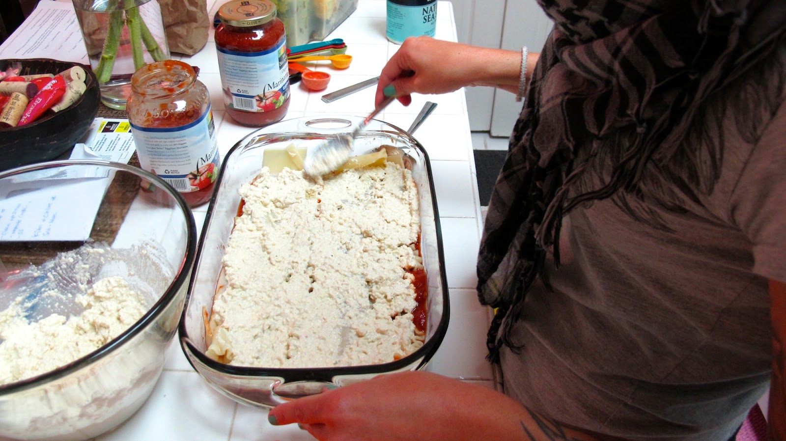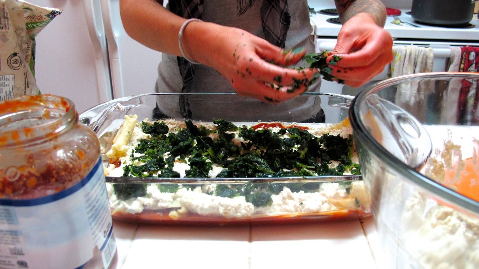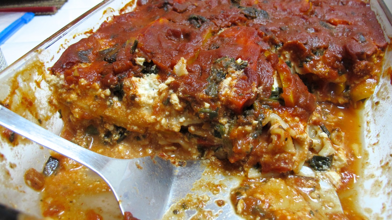 8 Egg-free Lasagne Pastas2 25 oz. (or 2lbs.) Jars of Marinara Sauce (I used eggplant marinara, but if you have time, make your own from scratch)