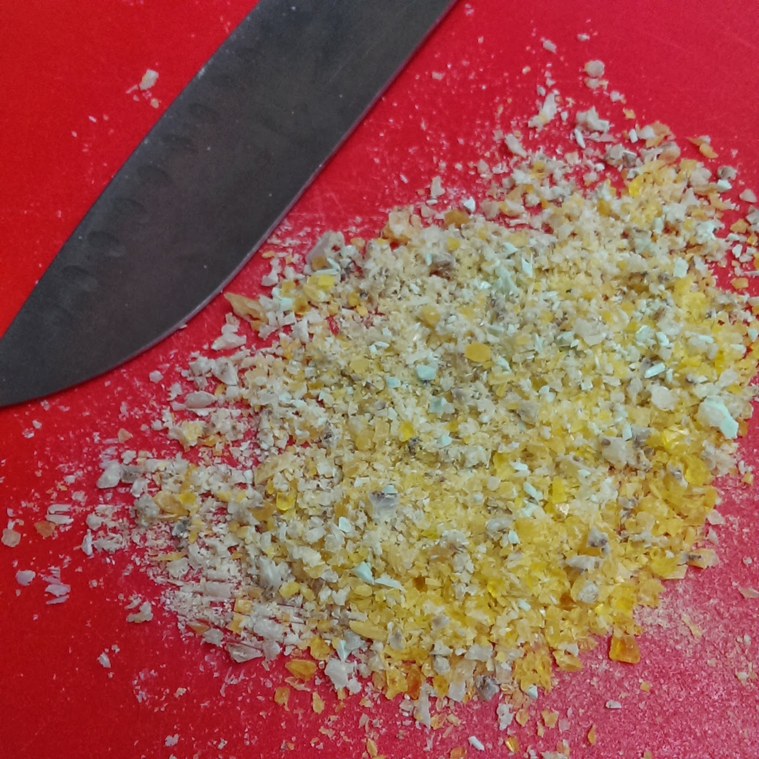 3. Option A: Place chopped pieces of soap in a small dish and press firmly. Carefully trickle in water just until soap pieces are covered. Let sit for an hour--the soap will expand and then you can press down firmly once more. Let soap sit for up to a week to ensure it is fully dry.